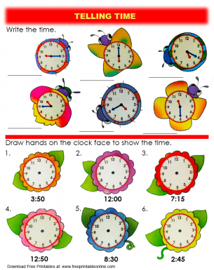 › free-math-worksheets › secondGrade 2 Telling Time Worksheets - free & printable | K5 Learning Grade 2 telling time worksheets including telling time to the whole hour, half hour, quarter hour and nearest 5 minute and 1 minute intervals; reading clocks and drawing clock faces, units of time, elapsed time, am and pm, calendars, days of the week and months of the year. No login required.